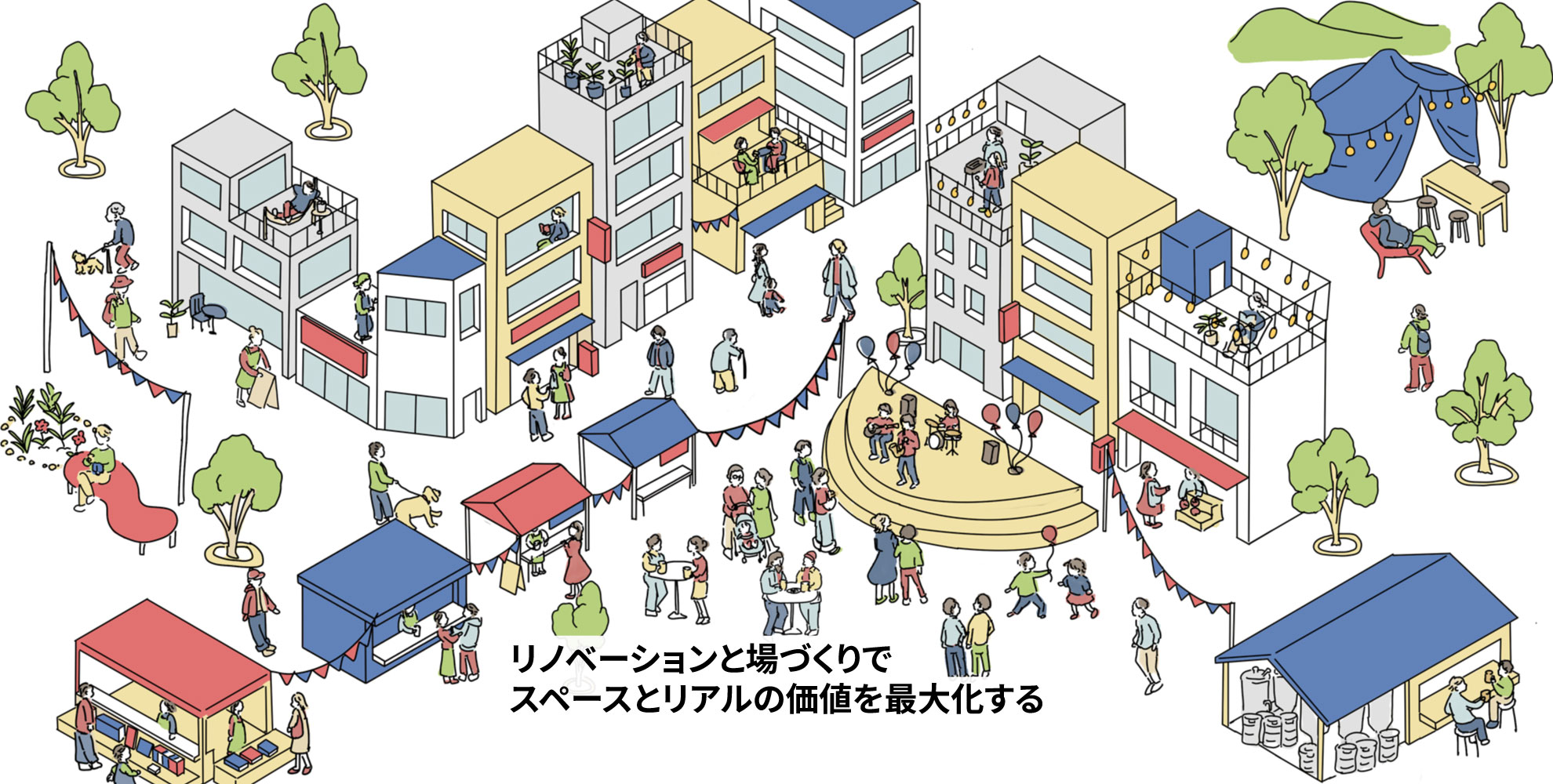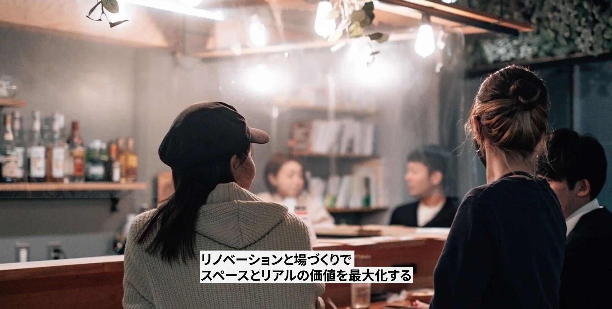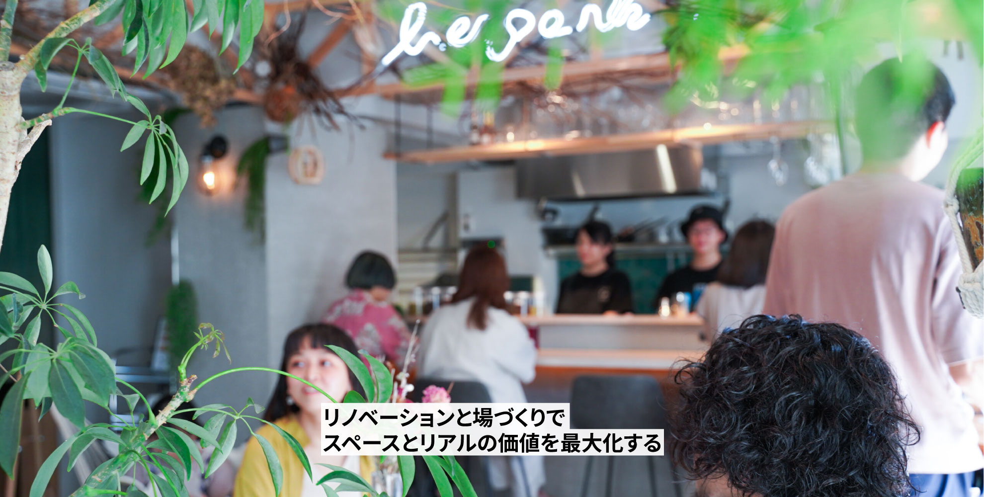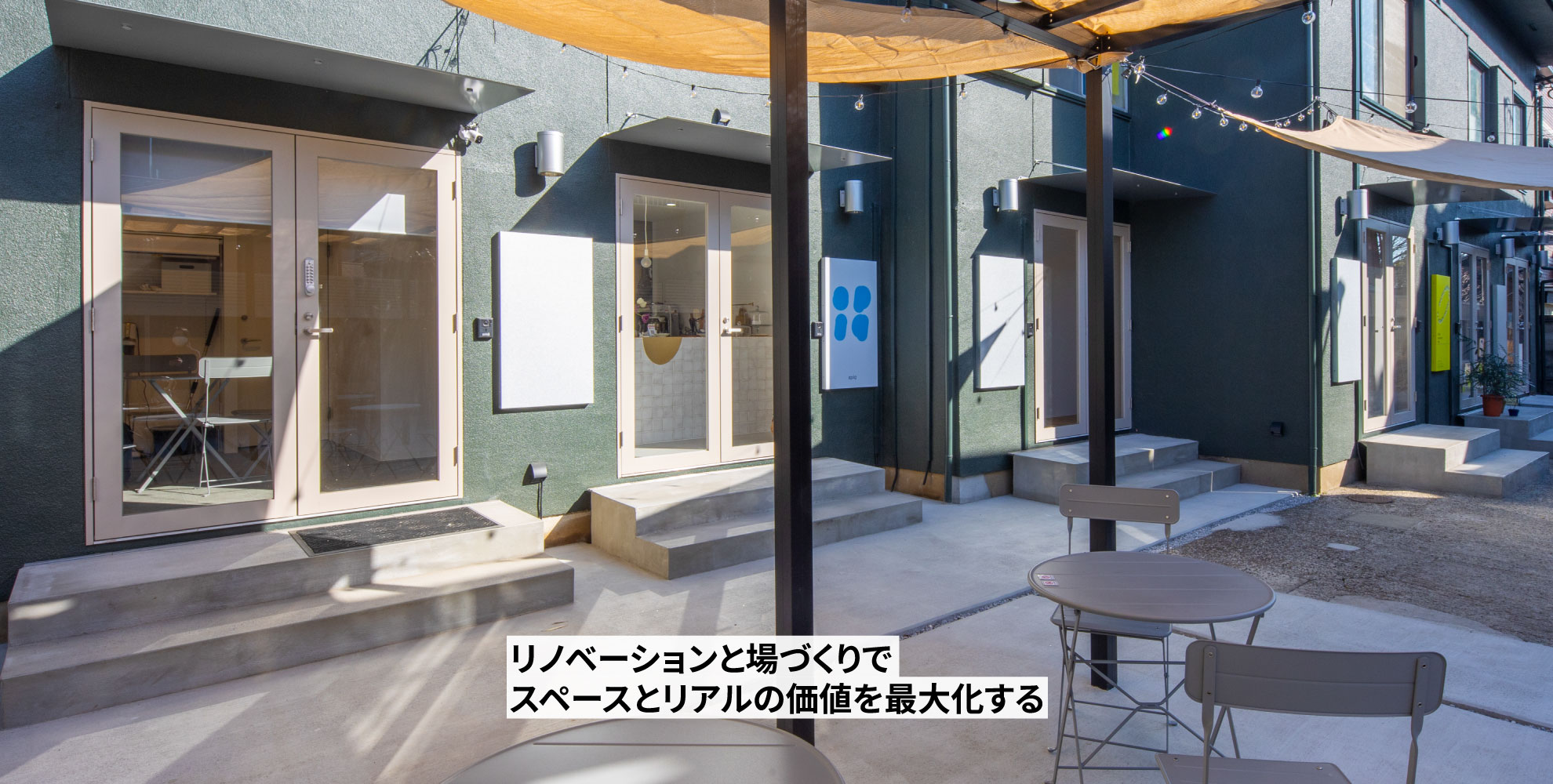 シェアハウス、レンタルスペース、飲食店、バー、シェアキッチン、本屋等、いろんなかたちで運営するひとつひとつの場所から想いをもった人たちを応援し、コミュニティを形成しながら地域活性に取り組みます。